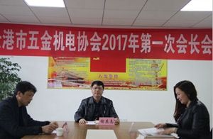 三月十八日下午,连云港市五金机电协会在会议室召开(2017)第一次会长工作会议。 会上,宋志标会长带领大家认真学习习近平总书记在全国“两会”上的重要讲话摘要和市工商联关于开展“四好”商会建设的实施意见。要求把《讲话》作为会员履职的指导思想,把“四好”作为协会全年的工作航标。遵纪守法,团结协作,扎实工作,确保五金机电协会工作上等级,创一流。